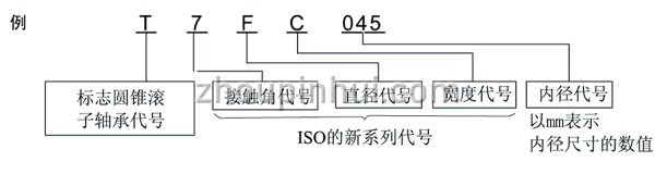 ISO355所规定的公制系列的圆锥滚子轴承中, 有不依据以往所使用的3xx尺寸系列的新尺寸。其中一部分记载于尺寸表。外圈宽度、外圈滚道的小端面直径及接触角与ISO的规定一致、内圈组件和外圈均具有*际互换性。其型号不同于以往的公制系列,构成如下。