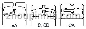 调心滚子轴承,如图所示,有高负荷容量设计的EA型,C型,CD型,CA型。设计上, EA型,C型,CD型 为冲压保持架, CA型为铜合金车制保持架。EA 型轴承具有高负荷容量,低转矩的特长。